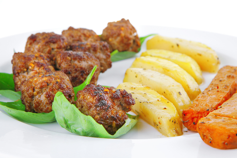 Postup: Nejdříve maso omyjeme a poté nakrájíme na menší kusy. Kusy masa nameleme v mlýnku na maso. Určitě je lepší umleté maso, dát ještě jednou do mlýnku, aby bylo jemnější a chutnější. Mleté maso dáme do mísy a přisypeme k němu najemno nasekanou cibuli a česnek. Dále okořeníme směs pálivou paprikou, římským kmínem a hořčičným semínkem, opepříme a osolíme dle chuti a přidáme vejce. Pokud je směs příliš řídká, zahustíme ji strouhankou. Ze směsi vytvoříme hrudky, které dáme na gril. Grilujeme ze všech stran asi 10 minut, maso nemusí být zcela dopečené. K masu si v troubě nebo na grilu uděláme hranolky. Oloupeme si brambory a mrkev a nakrájíme je na velikost hranolků. Smícháme olivový olej s nasekaným rozmarýnem a obalíme v něm hranolky, poté je posolíme. Hranolky z brambor dáme na gril nebo do trouby jako první, později přidáme mrkev. Grilujeme, dokud nejsou hranolky měkké. Jídlo můžeme vylepšit ještě domácími omáčkami, například můžeme zvolit sýrovou nebo klasickou tzatziki.