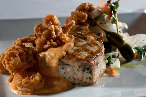 Postup: Mečouna si omyjeme a osušíme papírovými ubrousky. Do misky nalijeme olivový olej a přimícháme nasekané čerstvé bylinky – rozmarýn, tymián, šalvěj. Podle chuti můžeme okořenit také pepřem. Takto naloženou rybu necháme aspoň hodinu marinovat, aby do sebe vtáhla chuť a vůni bylinek. Mečouna grilujeme 10-12 minut a jako každý steak ho osolíme až po ugrilování, před podáváním necháme aspoň 3 minuty odpočinout. Nyní si k rybě uděláme chilli omáčku. Do rendlíku dáme rozpustit 2-3 lžíce másla a osmažíme na něm cibuli, poté přidáme nasekanou chilli papričku. Přilijeme smetanu a vývar a dochutíme dle vlastní chuti (můžeme přidat citron, víc chilli apod.). Pokud se nám zdá omáčka příliš řídká, zahustíme ji jíškou. K masu si ještě uděláme zelný salát. Zelí si nakrájíme na slabé proužky, osolíme a opepříme. Přidáme na jemno nakrájenou papriku, dále si vytvoříme zálivku z oleje a octa. Vmícháme zálivku do zelí s paprikou a přidáme kapary. Celý salát posypeme nasekanou čerstvou petrželkou. Rybu podáváme s chilli omáčkou a salátem. Dle chuti můžeme jako přílohu udělat brambory na jakýkoliv způsob