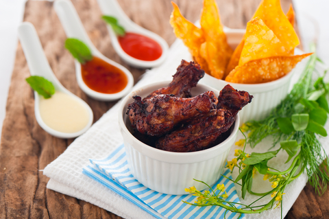 Postup: Jako první si naložíme kuřecí stehna, která necháme ideálně přes noc v marinádě, při nedostatku času je tam stačí nechat aspoň pár hodin před grilováním. Do misky nalijeme olej a přilijeme pomerančový džus. Poté přidáme nakrájené stroužky česneku, lžíci medu a chilli koření. Chilli můžeme použít klasickou sypkou směs nebo jakoukoliv chilli omáčku. Do marinády dáme chilli podle toho, jak moc máme rádi ostrá jídla. Pro barvu a zvýraznění chuti přidáme ještě papriku a pro vůni majoránku. Vše společně zamícháme, ideálně marinádu osolíme až chvíli před grilováním. Paličky grilujeme přibližně 30 minut. Omáčky můžete použít kupované jako chilli omáčku, ale medovou omáčku si uděláme jednoduše, že do kastrůlku dáme rozehřát med a přidáme k němu hořčici, přidáme kuřecí vývar (může být i z kostky), promícháme, opepříme a zahustíme jíškou. Můžeme si k paličkám udělat ještě sýrovou omáčku, která dodá kuřeti jemnou chuť. Ve smetaně necháme rozpustit gorgonzolu (může být i niva) a dochutíme pepřem či solí, ale často je omáčka už dost slaná díky sýru. Dle potřeby je omáčku možné zahustit dalším sýrem. Kuřecí paličky můžeme podávat s koupenými nachos, které si pouze ohřejeme.