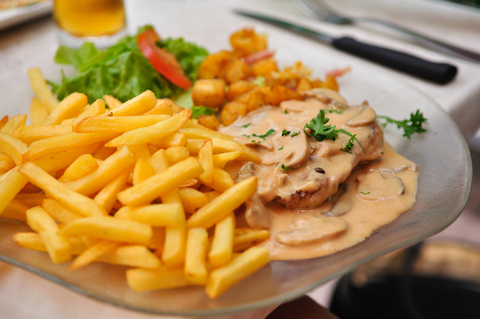 Postup: V první řadě si musíme připravit maso. Samozřejmě už si ho můžeme nechat naporcovat v obchodě, ale pokud máme maso vcelku, naporcujeme ho na steaky asi 2-3 cm vysoké. Jednotlivé plátky nenaklepáváme, pouze lehce proklepeme klouby ruky. Dále si maso naložíme do „bylinkové“ marinády. Tu vytvoříme smícháním kvalitního olivového oleje, čerstvě namletého pepře a čerstvých bylinek. Steaky dáme do bylinkového oleje a necháme přes noc marinovat, určitě nesolíme, aby nám sůl z masa nevytáhla šťávu. Po uplynutí marinovací doby, dáme maso na rozpálený gril a grilujeme zhruba 10 minut, až poté maso osolíme. K masu si uděláme smetanovou žampionovou omáčku. Žampiony si očistíme a nakrájíme na slabší plátky. Do pánve nalijeme lžíci oleje a přidáme nakrájené plátky. Když máme žampiony osmažené, přilijeme smetanu, osolíme a opepříme, můžeme přidat i sladkou papriku na dochucení. Pokud se nám zdá omáčka příliš řídká, zahustíme ji jíškou. Takto připravenou omáčku přelijeme přes udělané steaky a podáváme. Jako přílohu můžeme zvolit grilované brambory či smažené hranolky.